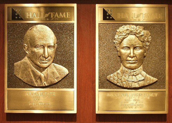 The bas relief plaques of Dr. Arnall Patz and Anne Sullivan Macy, who were beautifully inducted by Mary Nelle McLennan and Rick Welsh on Friday evening of Annual Meeting, now greet you as you enter the Hall of Fame for Leaders and Legends of the Blindness Field, housed at APH in Louisville.